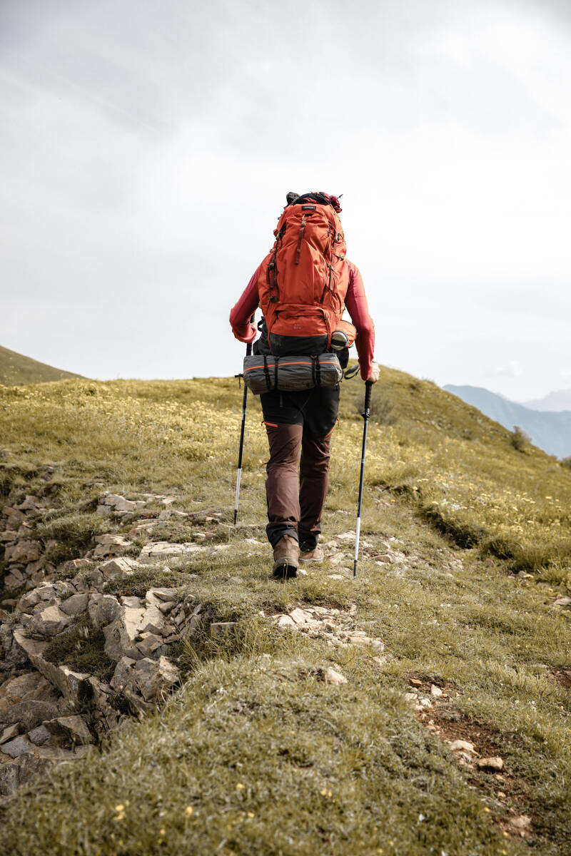 Als we op zoek zijn naar meer capaciteit, komt de Forclaz MT500 Air 50+10l goed van pas. Met een flexibel hoofdvak van 50 liter en een uitbreiding van 10 liter hebben we de vrijheid om meerdere dagen onderweg te zijn zonder ruimtegebrek. Door het lichte ontwerp en het stevige frame van netstof blijft het dragen prettig, zelfs op warmere dagen.