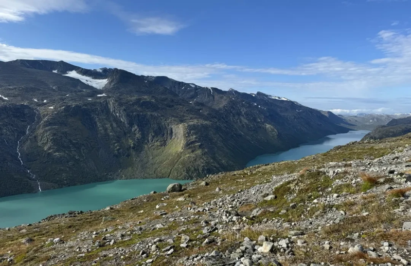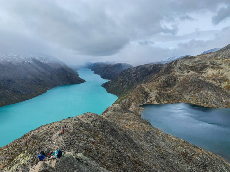 De Besseggen-rug, gelegen in het prachtige Jotunheimen National Park, is een van de meest indrukwekkende wandelroutes in Noorwegen. Deze 13 kilometer lange tocht voert je over een scherpe bergrug tussen het groene Gjende-meer en het blauwgroene Bessvatnet-meer, midden in de imposante bergen Noorwegen. Met een hoogteverschil van ongeveer 1000 meter is de route uitdagend en perfect voor avontuurlijke wandelaars die houden van ruige natuur.